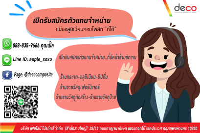 หากคุณกำลังมองหาธุรกิจเปิดร้านขายวัสดุตกแต่งหรือวัสดุก่อสร้างที่ฮิตติดตลาด ผู้รับเหมาเลือกใช้ ร้านค้าขายดี ราคาย่อมเยา มาเป็นครอบครัวกับเราสิค่ะ "ดีโก้" แผ่นอลูมิเนียมคอมโพสิท